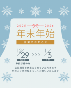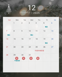 12月の休診日と矯正治療および歯並び無料相談の日程のお知らせ