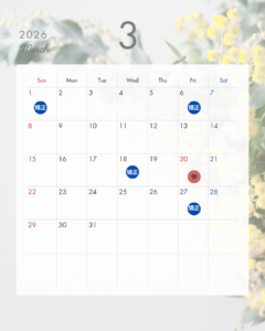 3月の休診日と矯正治療および歯並び無料相談の日程をお知らせいたします。
